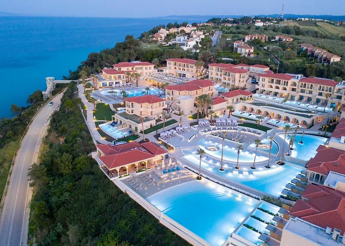 Dit hotel met 184 kamers is gelegen binnen 10 minuten met de auto van het Afytos strand. Het centrum van Afytos is te voet binnen 30 minuten te bereiken. Voor wie van ver komt, ligt de luchthaven Thessaloniki op 59 minuten rijden.